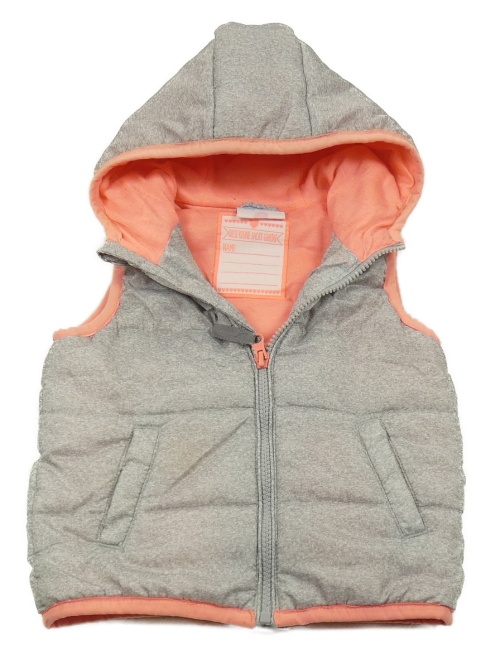 Šedo-lososová šusťáková zateplená vesta s kapucí Topolino