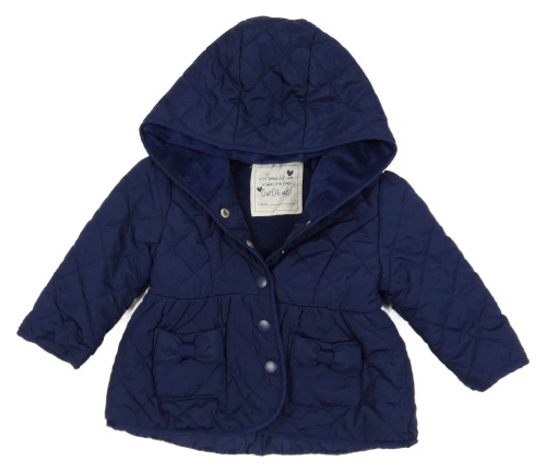 Tmavomodrá prošívaná šusťáková přechodová bunda s mašlemi a kapucí Matalan