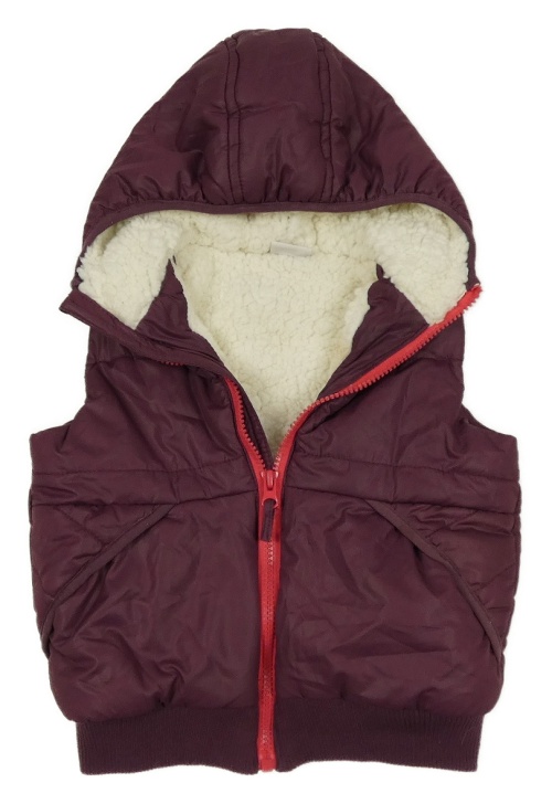Fialová šusťáková zateplená vesta s kapucí