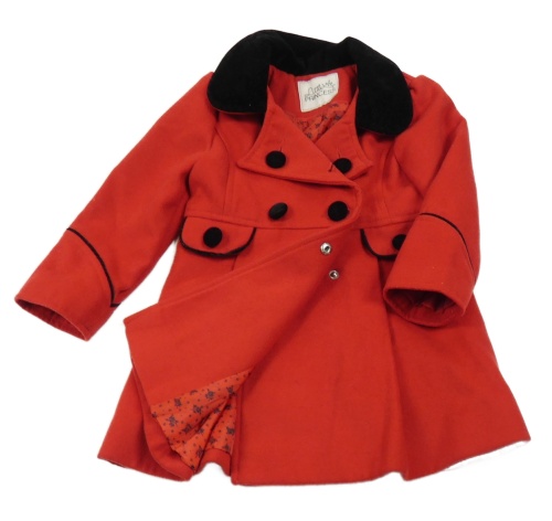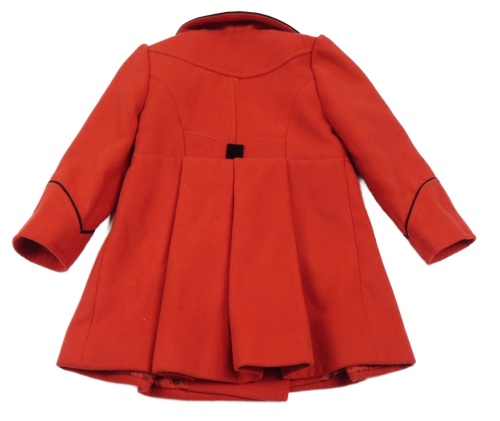 Červený flaušový kabát s černým sametovým límcem St. Bernard