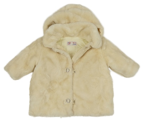 Smetanová kožešinová podšitá bunda s kapucí