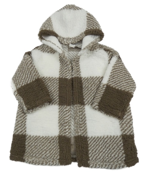 Hnědo-bílý kostkovaný huňatý cardigan s kapucí SHEIN