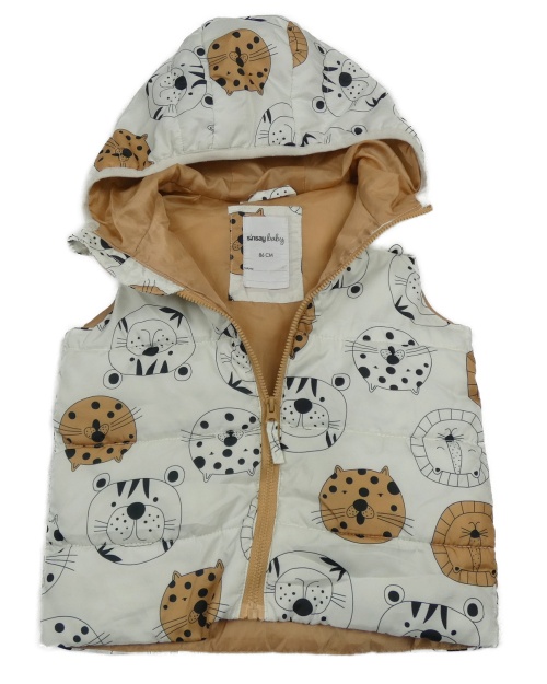 Bílá prošívaná šusťáková zateplená vesta se šelmami a kapucí sinsay