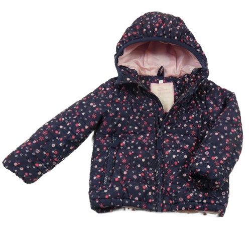 Tmavomodro-růžová květovaná šusťáková lehce zateplená bunda s kapucí Topomini