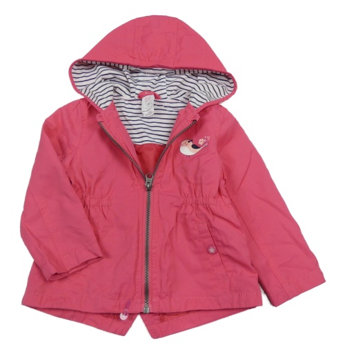Malinová šusťáková jarní bunda s ptáčkem a kapucí C&A