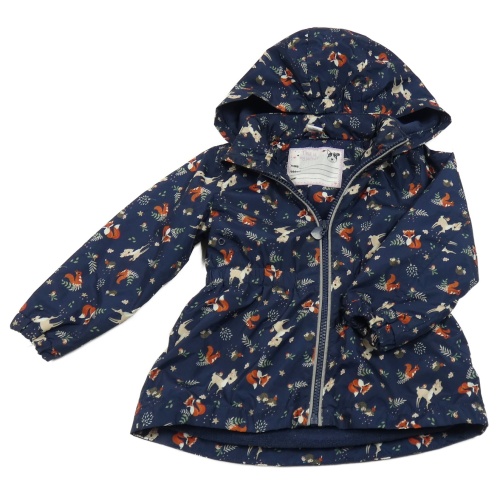 Tmavomodrá šusťáková jarní bunda se zvířátky a kapucí Dopodopo