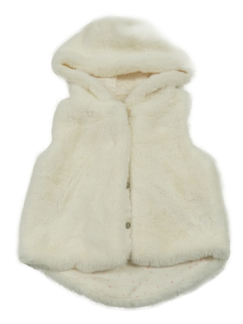 Bílá kožešinová podšitá vesta s kapucí Yd.