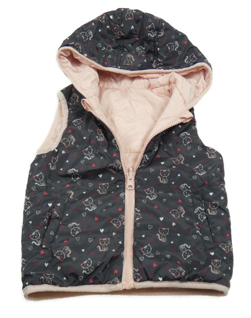 Tmavošedá šusťáková zateplená obosutranná vesta s kočkami a kapucí Topomini
