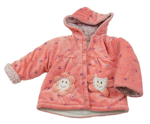 Růžový květovaný sametový zateplený kabátek s kapucí