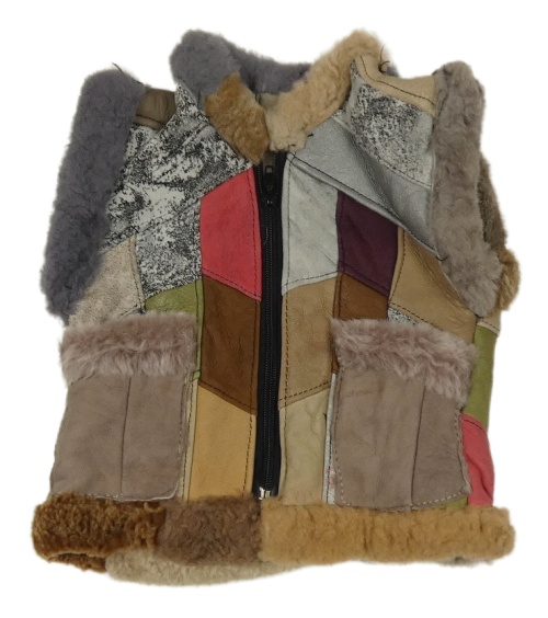 Barevná patchwork semišovo/koženková zateplená vesta s kožešinou
