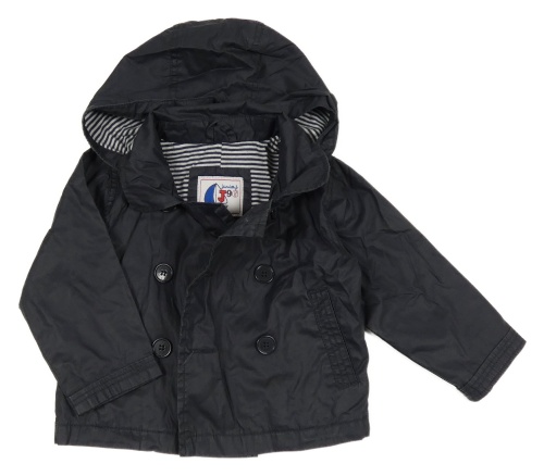 Tmavomodrá šusťáková jarní bunda s kapucí a knoflíky