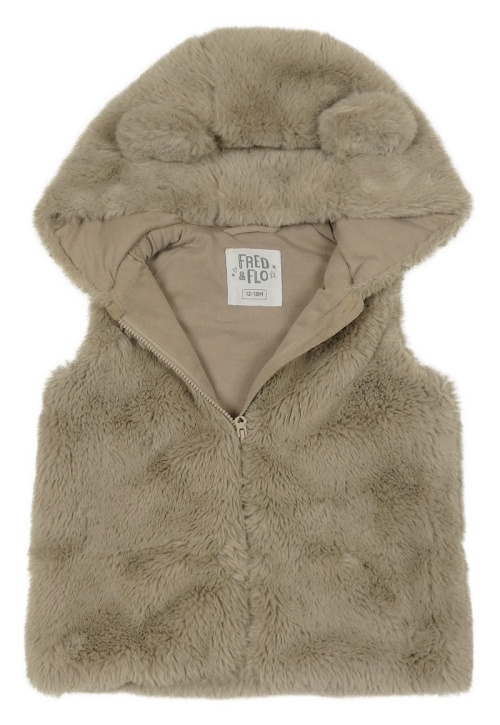 Hnědá kožešinová podšitá vesta s kapucí F&F