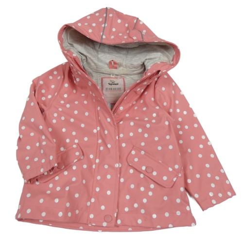 Růžovo-bílá puntíkatá nepromokavá jarní bunda s kapucí Topomini