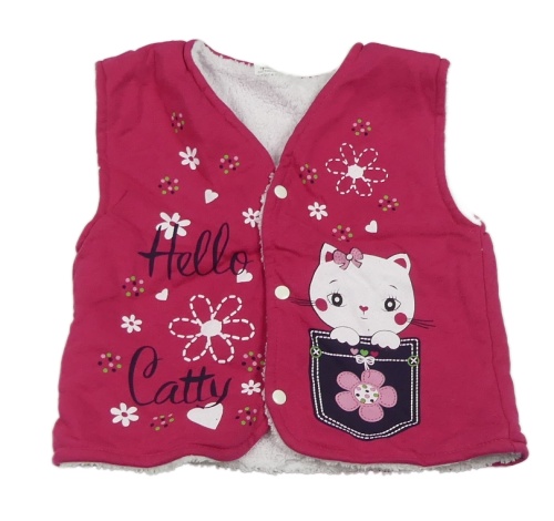 Fuchsiová tepláková zateplená propínací vesta s kočkou a květy
