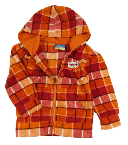 Červeno-oranžová kostkovaná fleecová bunda s nášivkou a kapucí Topolino