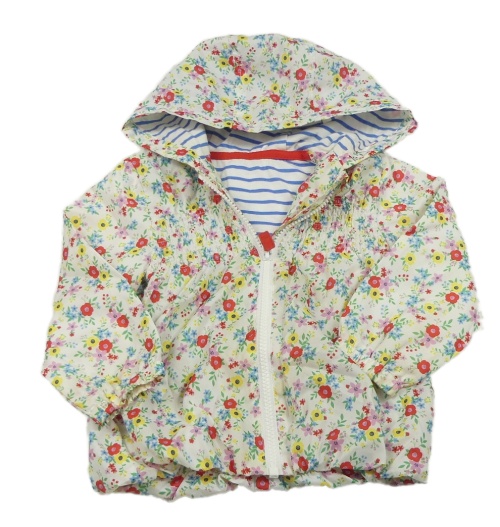 Bílo-barevná květovaná šusťáková podzimní parka s kapucí Tu