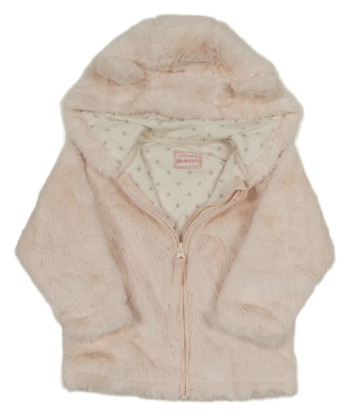 Světlerůžová kožešinová podšitá bunda s kapucí s oušky Bluezoo