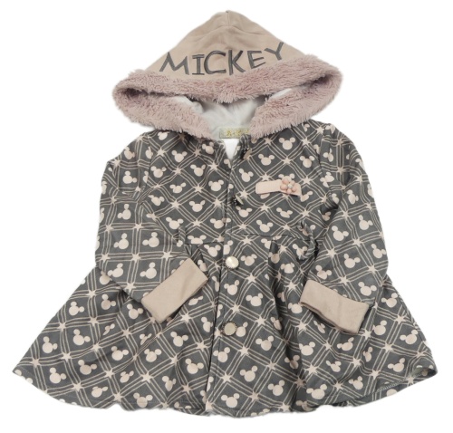 Šedo-světlerůžový vzorovaný podšitý kabát s Minnie a kapucí