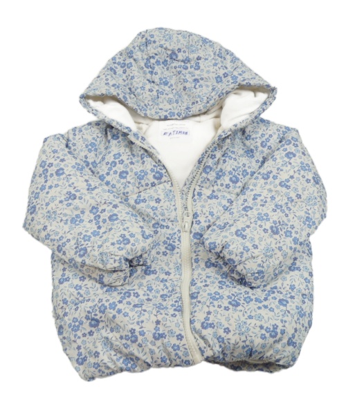 Bílo-světlemodrá květovaná šusťáková zimní bunda s kapucí Primark