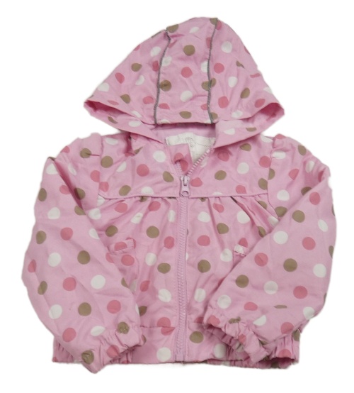 Růžová puntíkatá šusťáková podšitá bunda s kapucí
