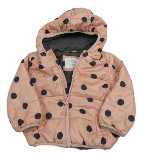 Růžová puntíkatá šusťáková zateplená bunda s kapucí M&S
