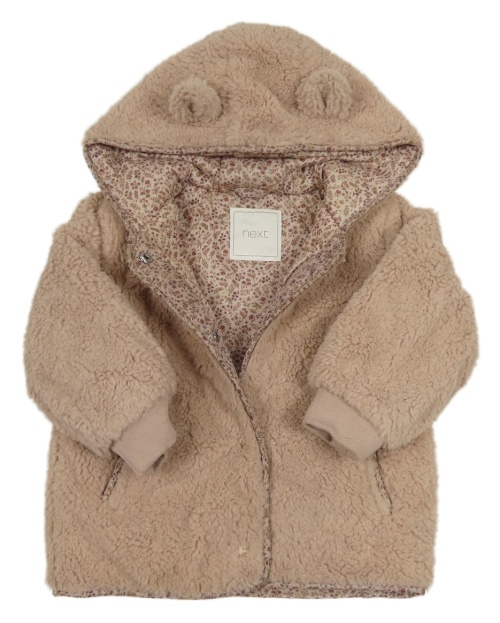 Starorůžová huňatá podšitá bunda s kapucí Next