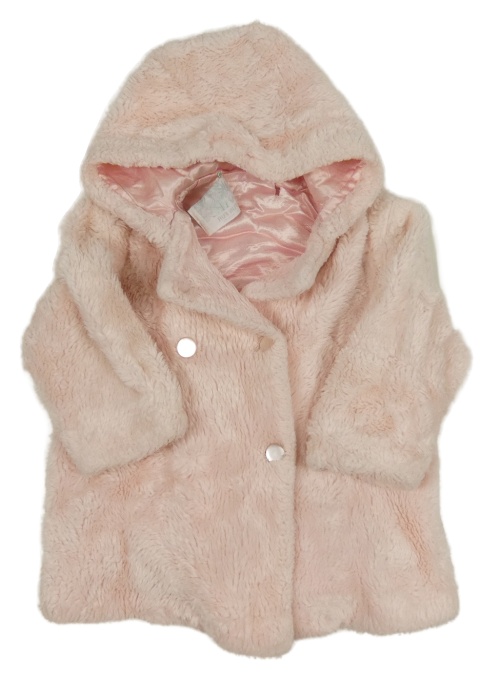 Světlerůžový chlupatý podšitý kabát s kapucí