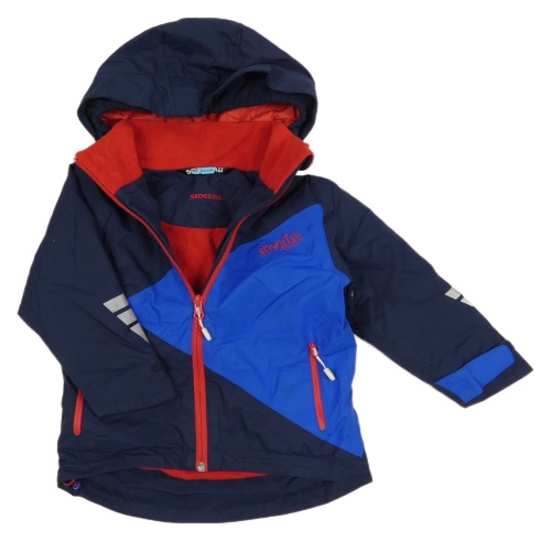 Tmavomodro-modrá šusťáková zimní bunda s kapucí