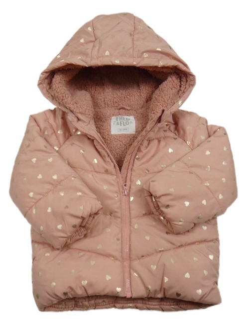Starorůžová šusťáková zimní bunda se srdíčky a kapucí F&F