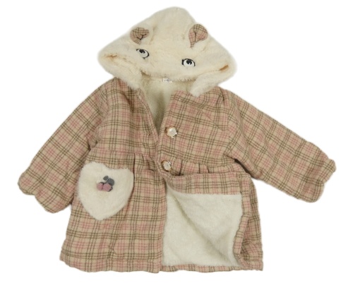 Starorůžovo-béžový kostkovaný zateplený kabát s kapucí