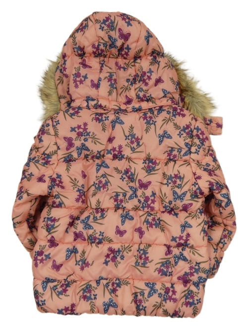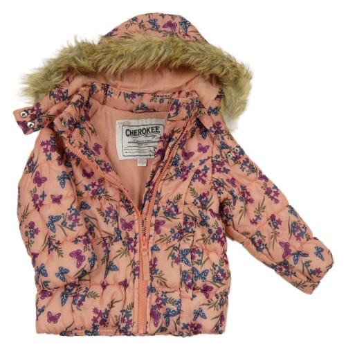 Světlerůžová šusťáková prošívaná zimní bunda s motýlky s odepínací kapucí Cherokee