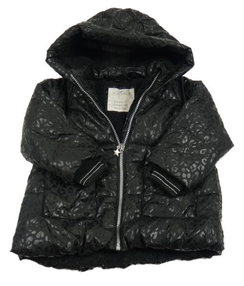 Černá šusťáková zimní bunda s leopardím vzorem a kapucí Matalan