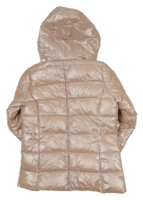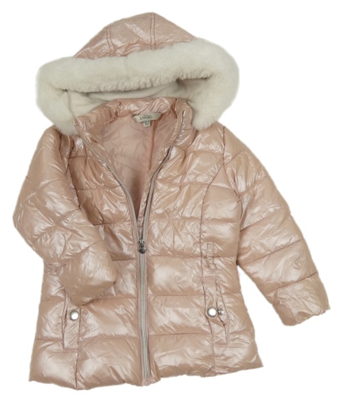 Světlerůžová lesklá šusťáková zimní bunda s kapucí s kožešinou E-Vie