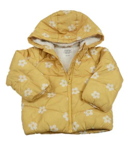 Okrová květovaná šusťáková zateplená bunda s kapucí F&F