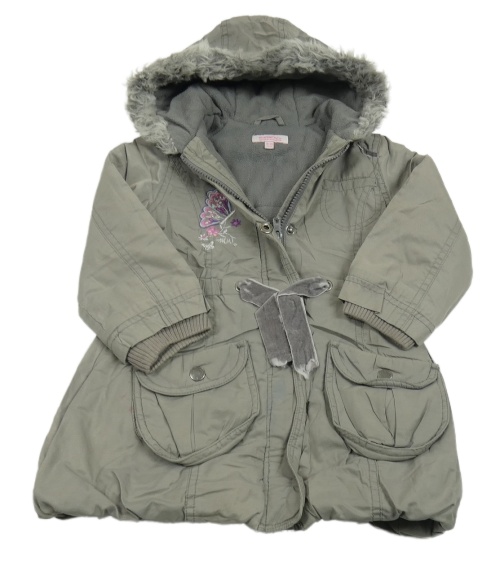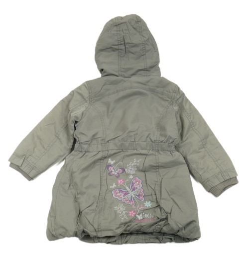 Šedý šusťákový zateplený kabát s motýlem a kapucí Bluezoo