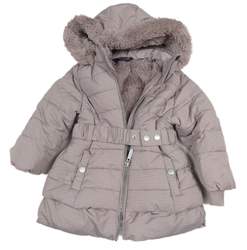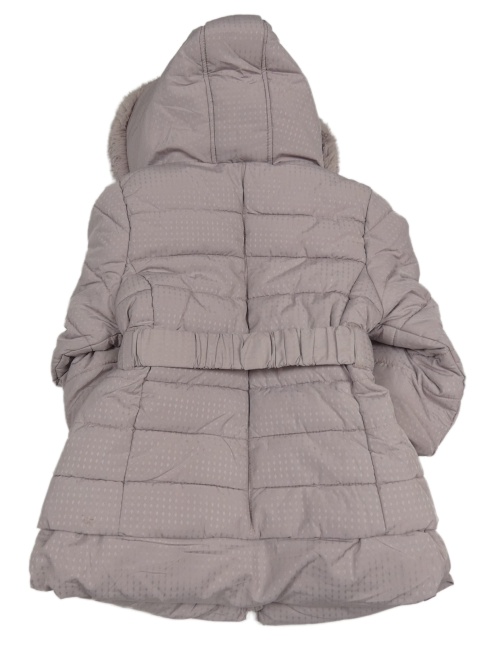 Pudrové fialová šusťáková prošívaná zimní bunda s kapucí s kožešinou