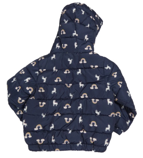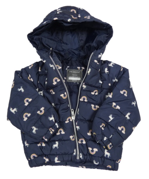 Tmavomodrá šusťáková zateplená bunda s duhami a kapucí Primark