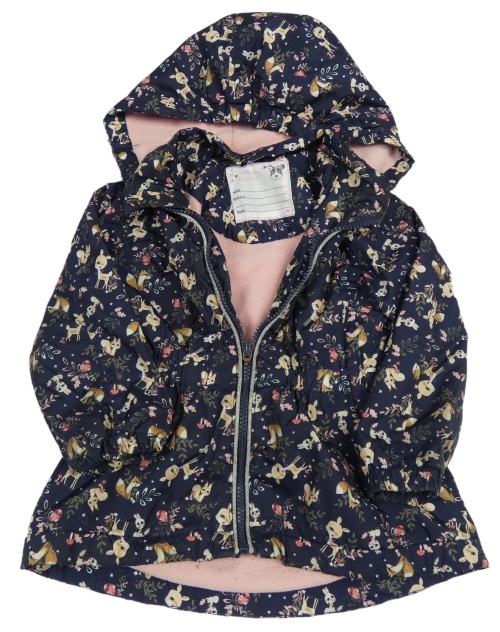 Tmavomodrá šusťáková podzimní bunda se zvířátky a kapucí Dopodopo