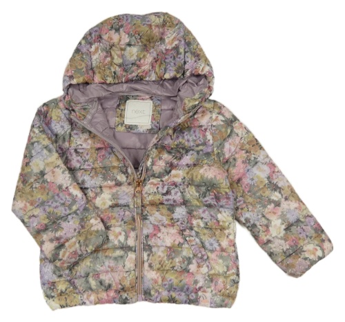 Barevná květovaná šusťáková zateplená bunda s kapucí Next