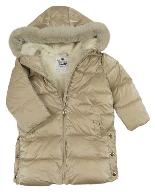 Béžový lesklý šusťákový zimní kabát s kapucí F&F