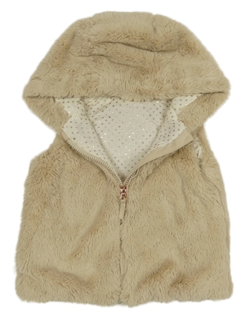 Světlebéžová kožešinová podšitá vesta s kapucí Nutmeg