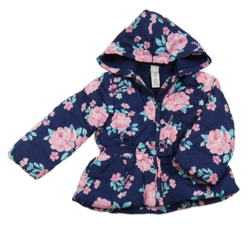 Tmavomodrá květovaná šusťáková zateplená bunda s kapucí