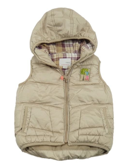 Béžová šusťáková zateplená vesta s nášivkou a kapucí Next