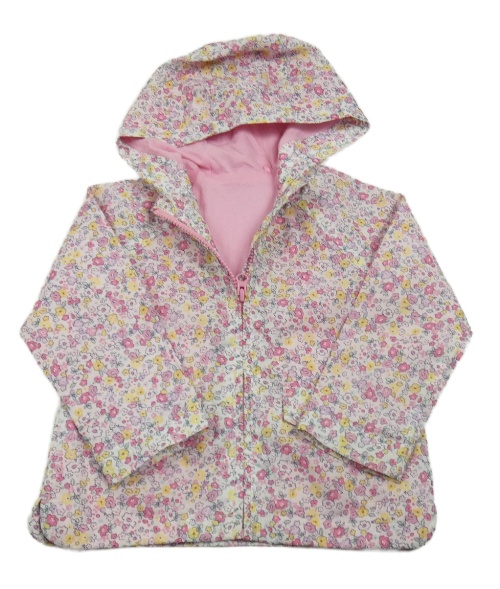 Bílo-růžovo-žlutá květovaná šusťáková jarní bunda s kapucí Tu