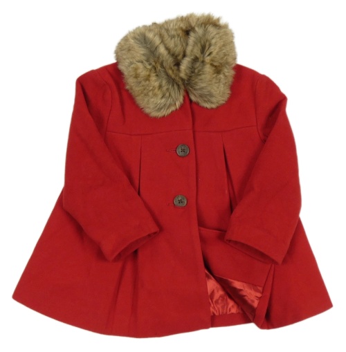 Červený flaušový kabát s kožešinou F&F