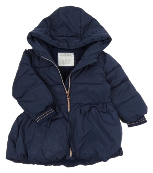 Tmavomodrá šusťáková zimní bunda s mašlemi a kapucí Matalan