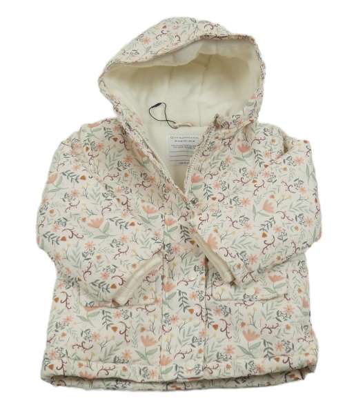 Smetanová květovaná šusťáková zateplená bunda s kapucí Primark