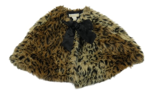 Hnědo-černá kožešinová pelerína s leopardím vzorem a mašlí Place