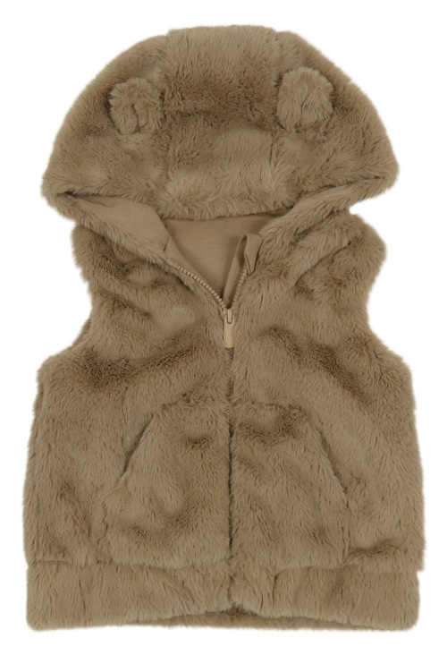 Světlehnědá kožešinová podšitá vesta s kapucí s oušky St. Bernard