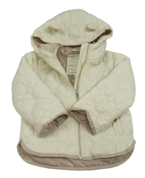 Smetanová šusťáková zateplená bunda s prošívanými srdíčky a kapucí RIVER ISLAND